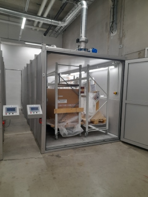 - Suuri kapasiteetti: Kammion mitat (pituus n. 6 m, leveys 2,5 m, korkeus 2,3 m) mahdollistavat suurtenkin esine-erien käsittelyn kerralla. Kammion mitat voidaan kuitenkin räätälöidä asiakkaan tarpeiden mukaan.